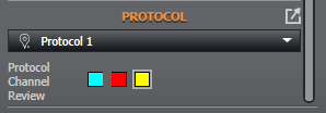 The protocol section of the panel provides a dropdown list of all defined protocols, allowing you to easily switch between them. The channels for the selected protocol are also displayed, allowing you to quickly review them.