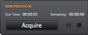 Click Acquire to start the acquisition. Pause and stop controls may be used to pause or stop an acquisition in progress. The Run Time for the protocol and the time Remaining until the protocol is complete is also displayed.