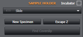 SAMPLE HOLDER: This allows you to select the sample holder type you are currently using. If using an Incubator, this can be specified by enabling the Incubator checkbox. This will apply an offset to any movement in Z, which can be specified in Hardware preferences