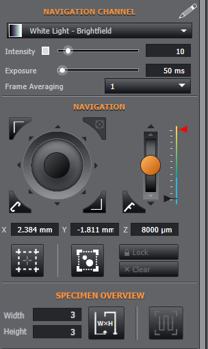 New Specimen: This button will clear any previously set navigation bounds and escape the current objective. This is designed to quickly help you after load a new sample.