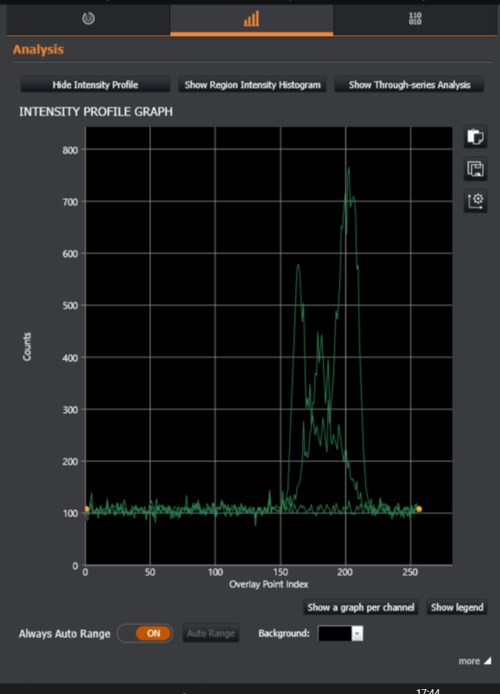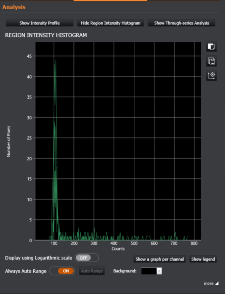 - more: View the Region Intensity Histogram Statistics and Data in tabular format