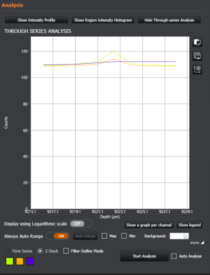 | Show Through-series Analysis | Toggles the display of a through-series analysis view of the current image data |