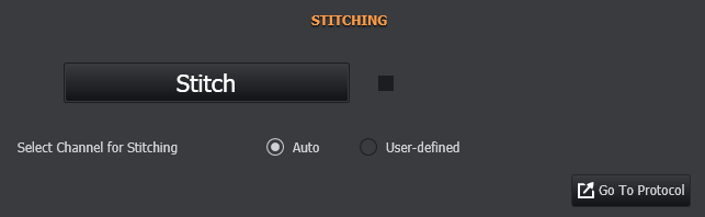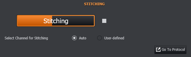 Once started, stitching progress is shown and can be cancelled by pressing the square "stop" button to the right of the "Stitch" / "Stitching" button.