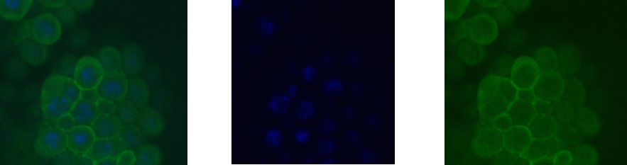 Above - Left: blue and green channels (multi selected), Centre: Blue channel only, Right: Green Channel only.