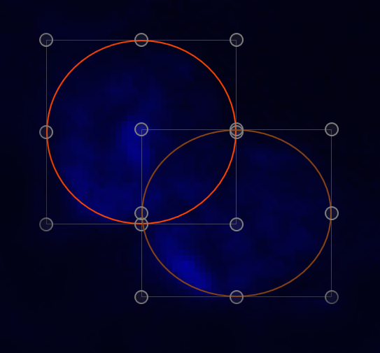 - The two overlays are combined into one complex shape (in this example two ellipses).