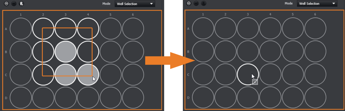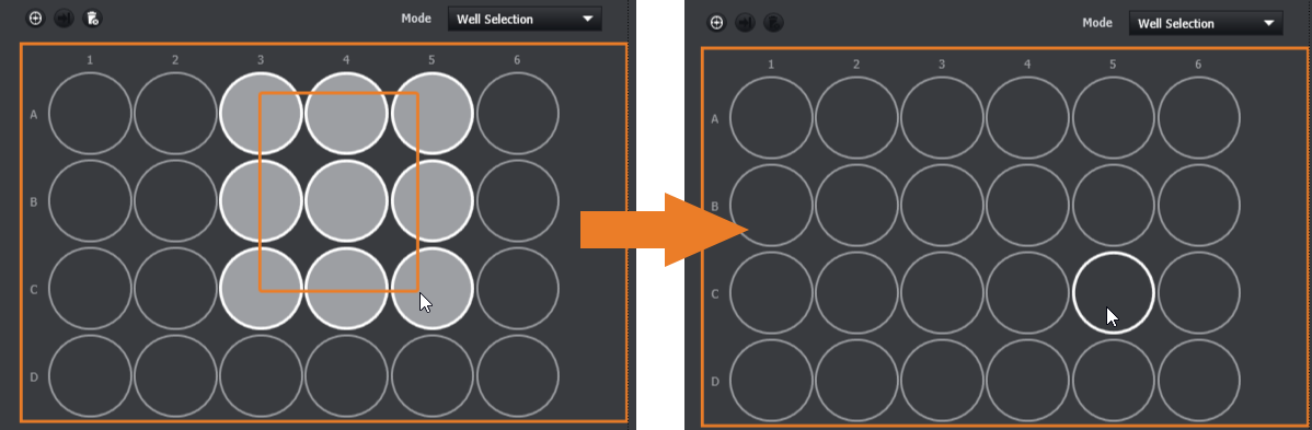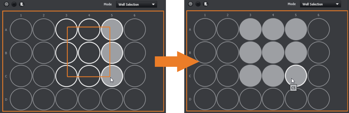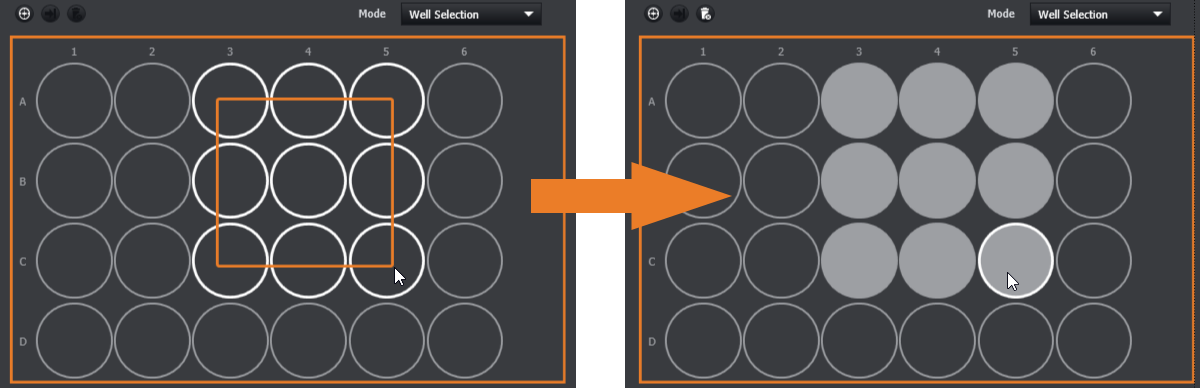 NOTE: If you click and drag over a combination of selected and deselected wells, all the highlighted wells will be selected.