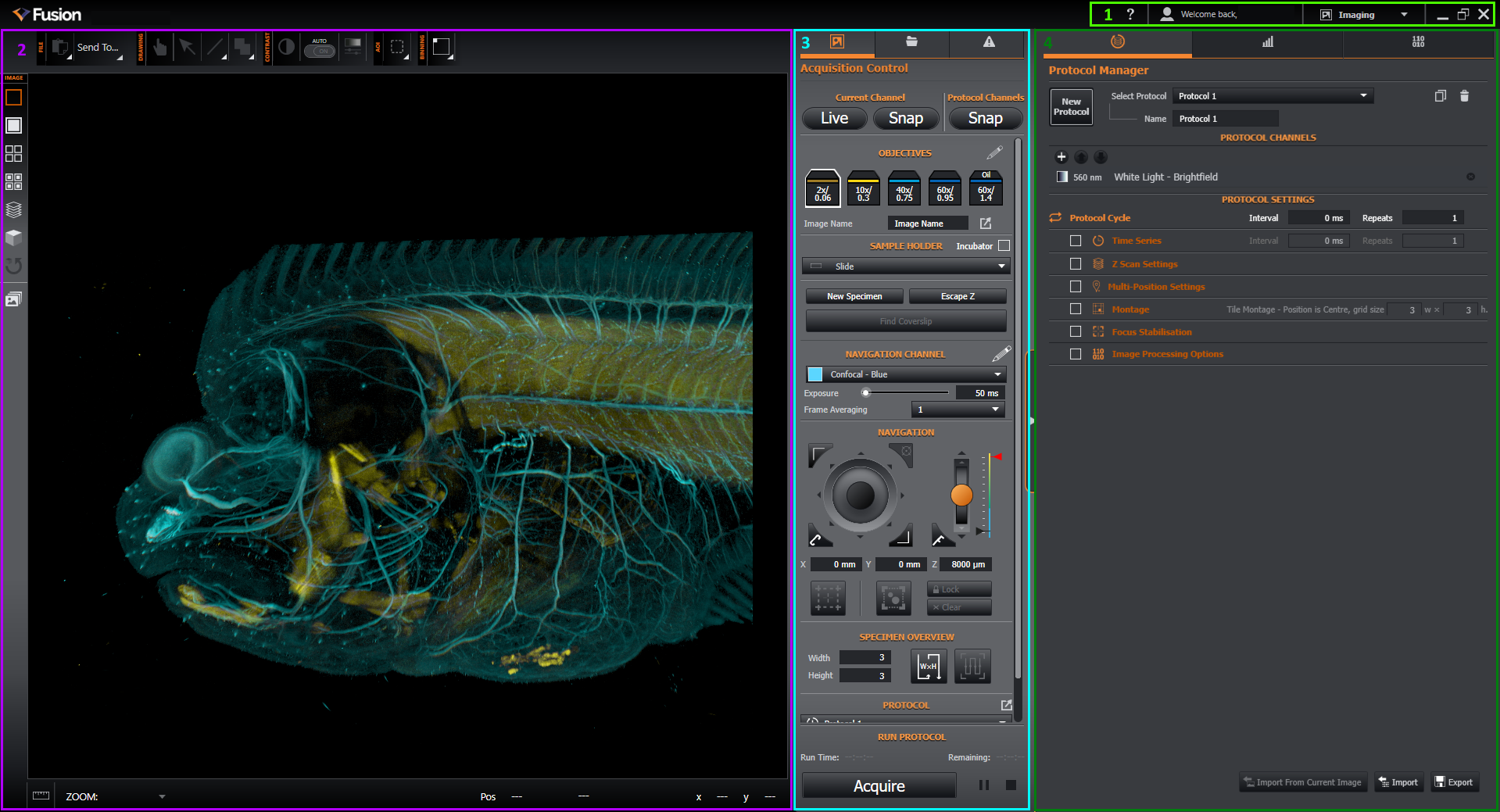 The User Interface of Fusion features a series of panels that group functions together in an intuitive way.
