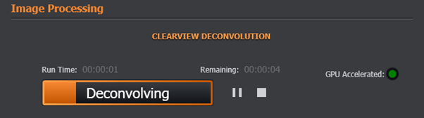 - The elapsed run time and time remaining are displayed above the Deconvolve button.