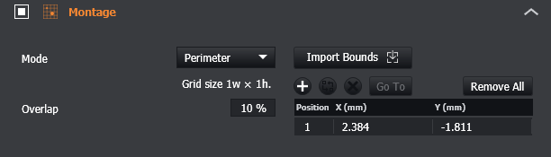 Perimeter - When in Perimeter mode, you define positions and the montage size will be automatically calculated to include all the defined positions. Import bounds allows the top left and bottom right coordinates to be used from set bounds.