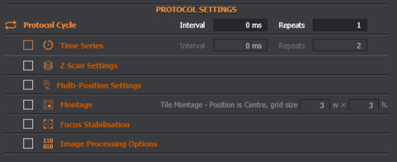 Apply Stitching - This will automatically stitch the image after acquisition. Only available if montage has been selected in the protocol.