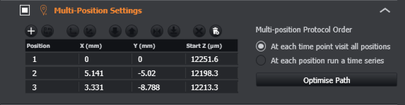 Positions can be re-ordered for protocol execution or reviewed before the acquisition.