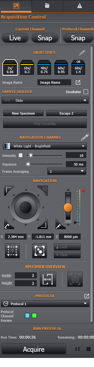 - Acquisition Control - channel modification, specimen navigation, etc.