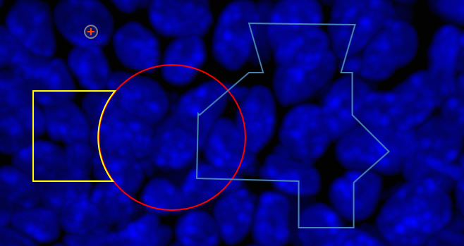This section shows you how to use and work with analysis overlays. Overlays can be used to set an area for use in the Analysis panel. Examples of image analysis options are shown in the topics Intensity Profile, Region Intensity Histogram and Through Series Analysis.