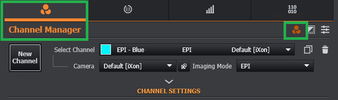To create a channel, please ensure to have an appropriate imaging mode created. To do this, open Imaging Mode Manager within Channel Manager tab (Imaging Mode and Feature Locations), where almost all device settings locations can be defined.