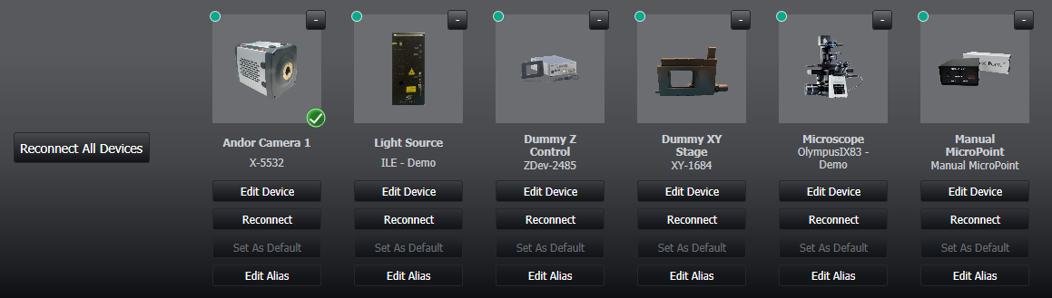 A tick symbol indicates the default device (e.g. in the case there is more than one device in the same category).