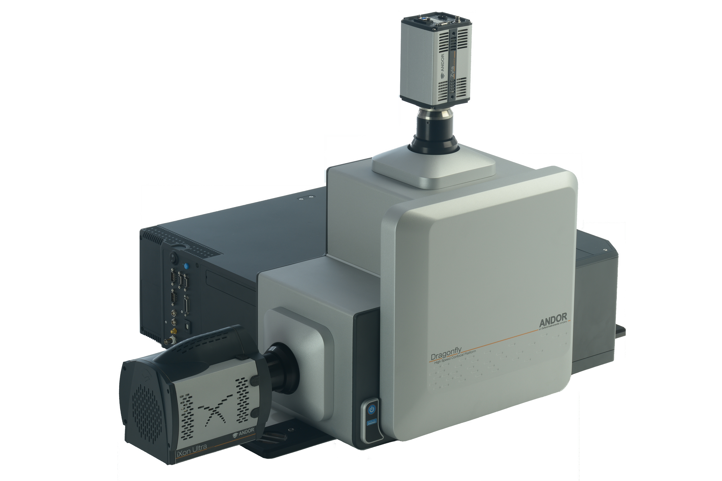 Dragonfly is a multi-modal imaging platform enabling laser-based widefield, spinning-disk confocal, and optionally total internal reflectance fluorescence (TIRF) microscopy when connected to a research-grade microscope. The Dragonfly is intended for professional scientific research applications, especially live-cell biological imaging and photo-stimulation. Fusion has been developed to exploit the full functionality and performance of the Dragonfly.