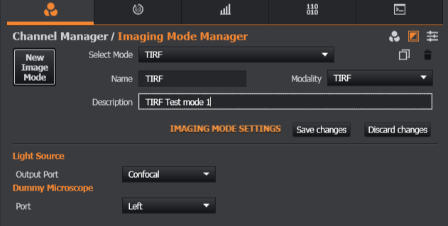 To find out more about Imaging Mode options, refer to the section Channel Manager Tab.