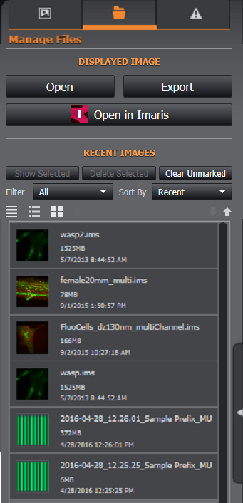 It may also be possible to Open In Imaris to open in Imaris for image analysis- if Imaris (available separately) is installed.