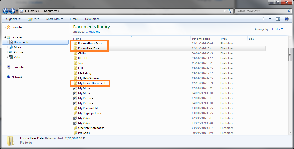 My Fusion Documents - this folder is created when Fusion is first installed. It is the default location for the Root folder for Fusion to acquire data. It is recommended to change this location to a large and/or fast drive other than C:\ - see Preferences, File Manager.