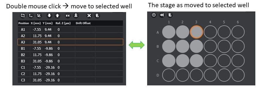 - Spatial information of the selected position relative to the well plate can be quickly accessed by clicking on well plate view.