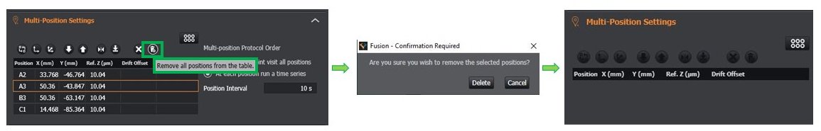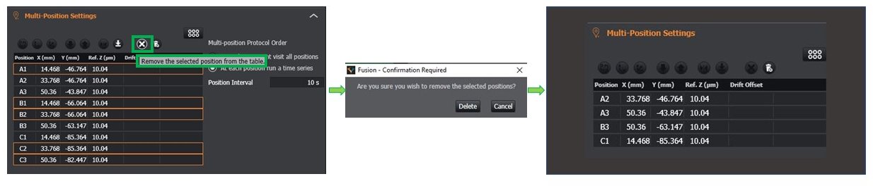10. Delete one or more selected positions by clicking on the icon highlighted in green