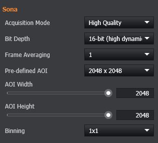 Sona sCMOS Camera Settings