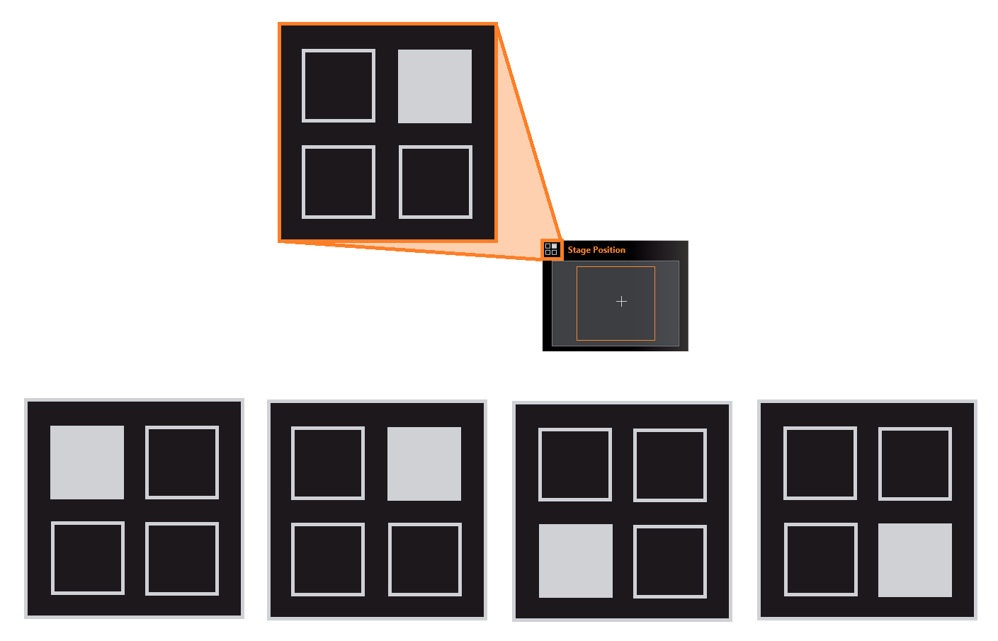 The position of the Stage Position sub-window can be adjusted to appear in a different corner of the image viewer panel. To do this, click the box that corresponds to the corner of the image viewer panel you want the sub-window to appear at (the default is top-right).